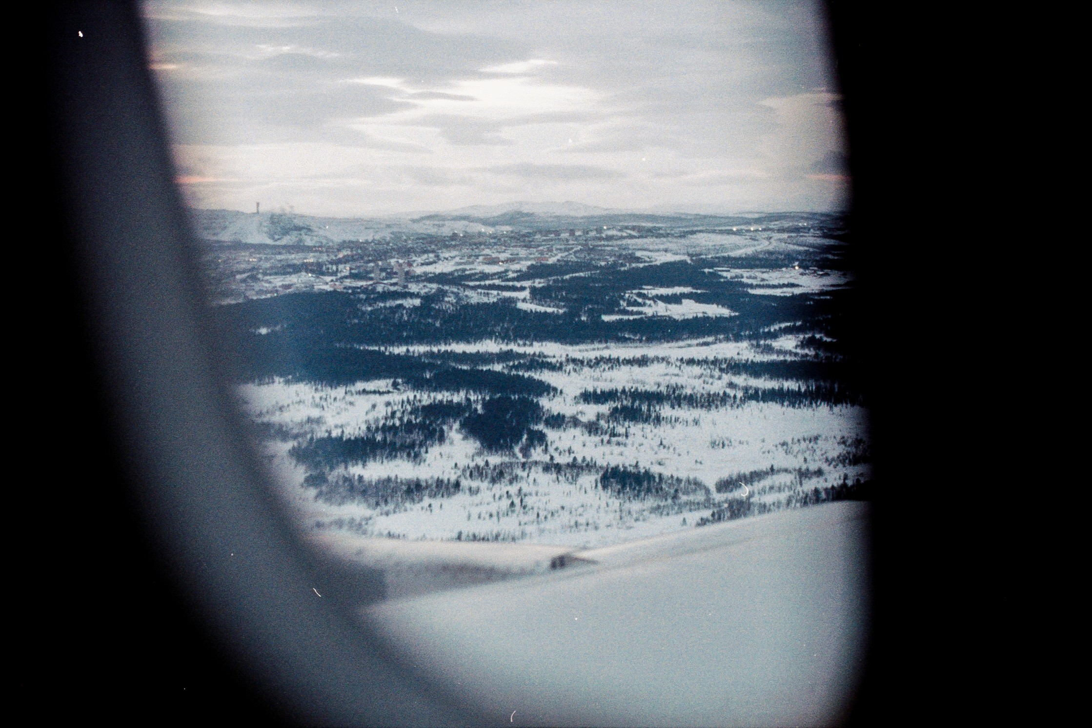 view of Kiruna before landing, with the LKAB visible in the distance