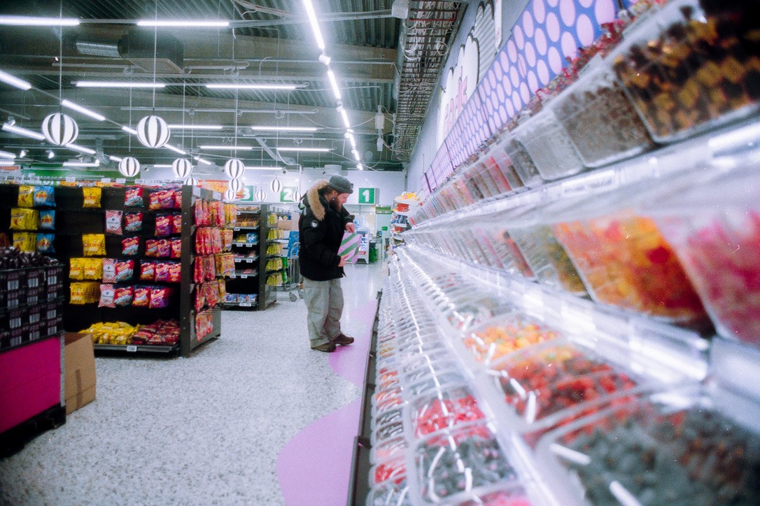 One of the most important stops, though, was at the candy aisle. There was an entire wall filled with sweets in every imaginable shape, flavor, and texture. It was impressive, and we both filled a paper bag for the journey.