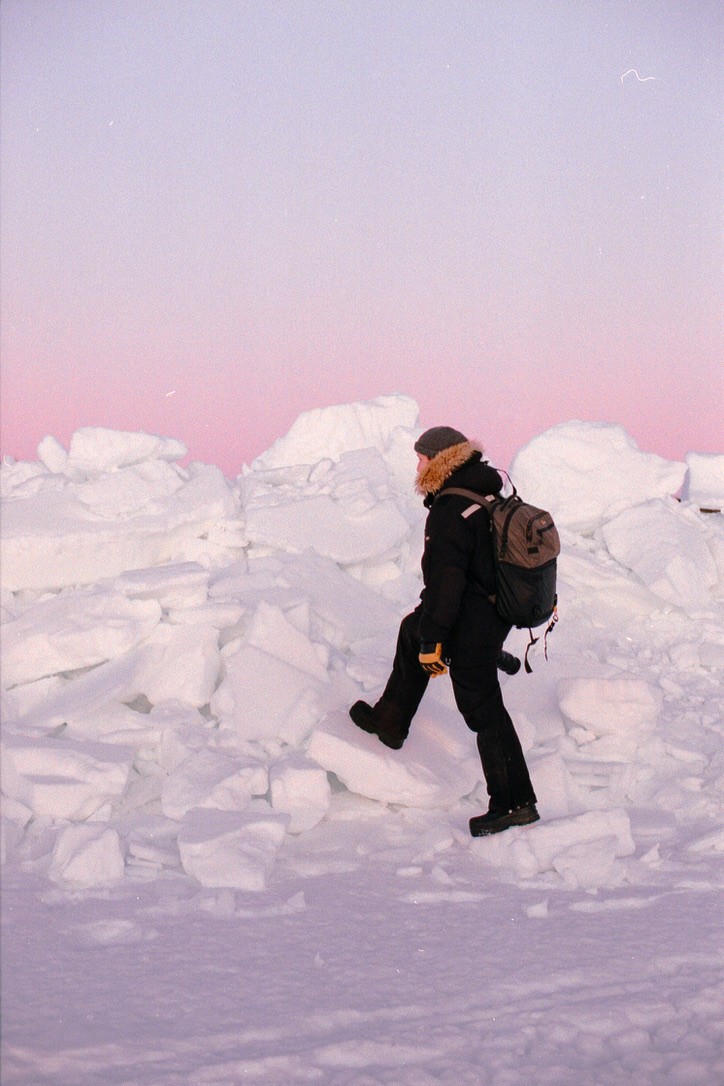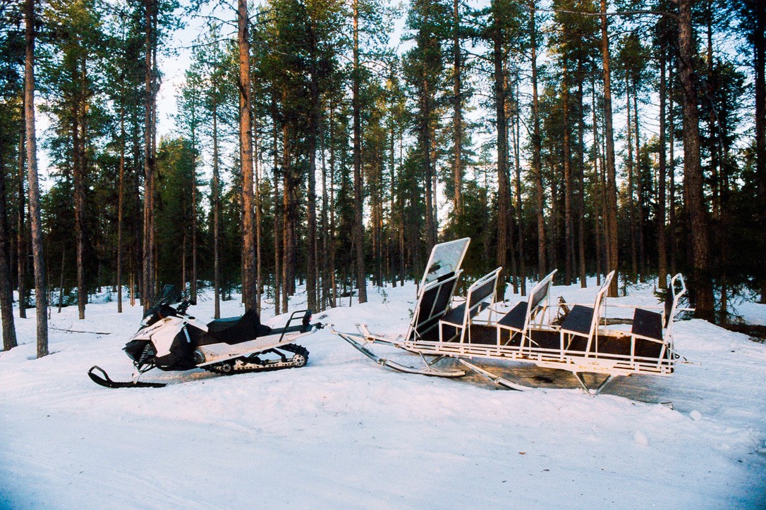 With my friend, host, and local guide, Bence, we set out on a two-day snowmobile trip to explore the lakes, rivers, marshlands, and forests surrounding the area. Dressed in thick layers of expedition-grade clothing, with a few rolls of film in our pockets, we aimed to stay as off the grid as possible.