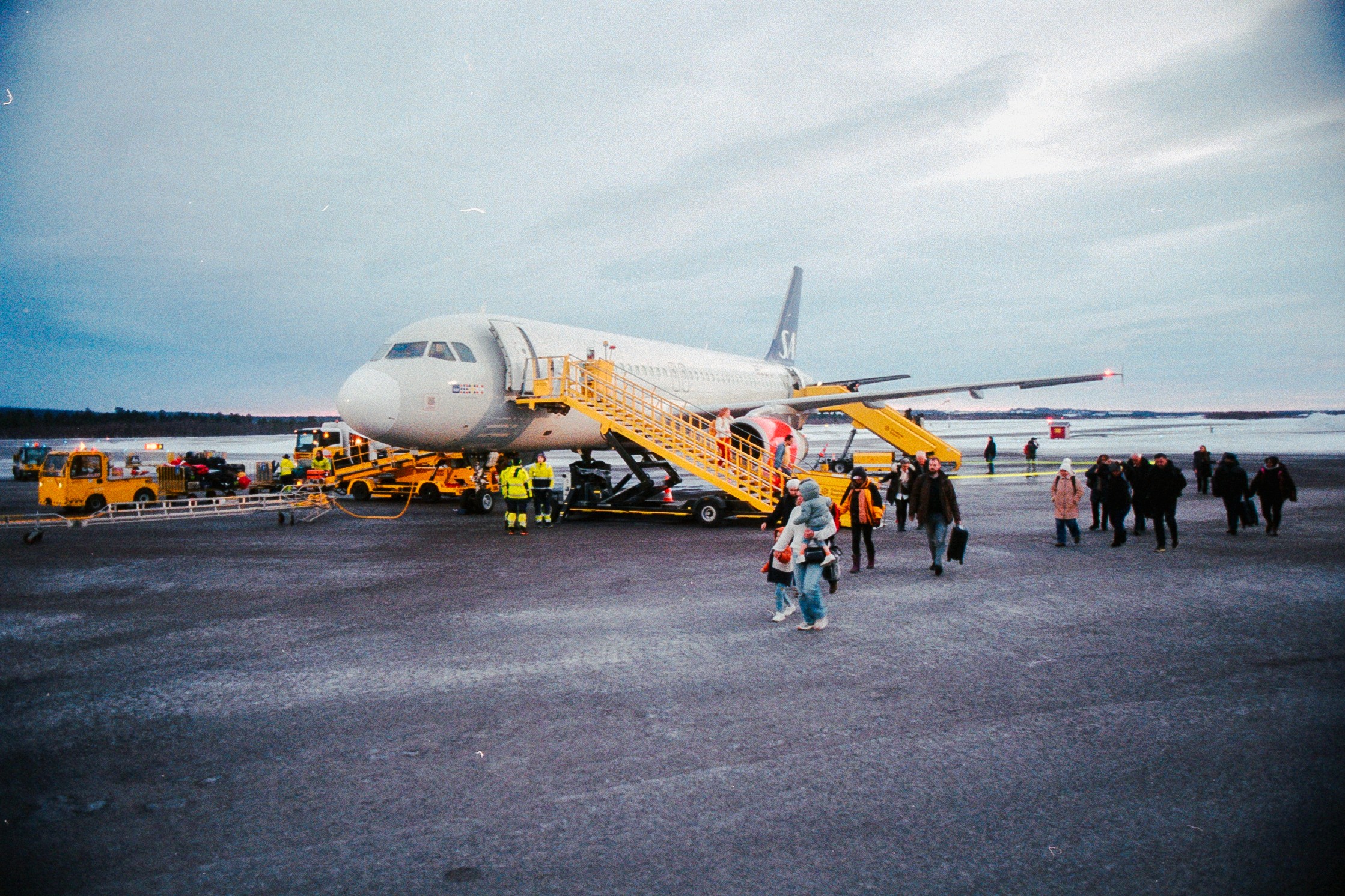 Kiruna’s airport is small—about the size of a small elementary school. It has a single paved runway, 2,502 meters long, and a staff of around 100 people. With just one gate, the airport handles about five flights a day, most of them return trips to Stockholm. In the harsh winter cold, every plane must be de-iced before takeoff.